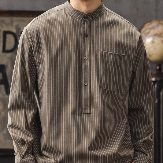 ストライプ ハーフボタン スタンドカラーシャツ(2Colors)260172
