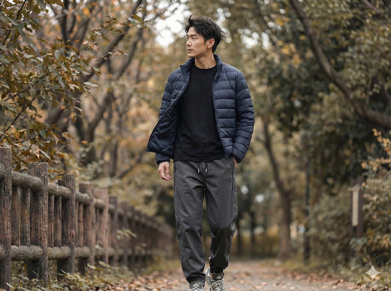 真冬の街と外遊びを快適にする服 CHAMPYEE LOOKBOOK 寒い日も、無理せず外へ。防寒ジャケットとイージーパンツで作る真冬のリアルな日常着。 デザインステッチ 裾絞り イージーパンツ(3Colors)250635 裏ボア スタンドネック 防寒ジャケット(3Colors)241122 中綿入り 防寒 ミドル丈ジャケット(3Colors)240821
