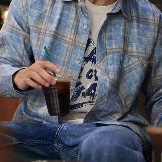レトロブルー 長袖チェックシャツ(1Color)250798