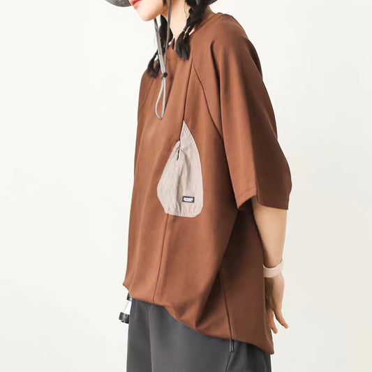 しずく型ポケット付 オーバーサイズTシャツ(2Colors)250427