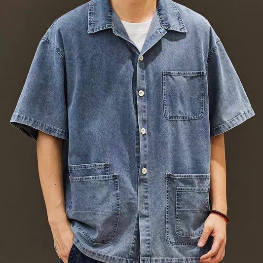 デザインポケット デニム オープンカラーシャツ(1Color)250329