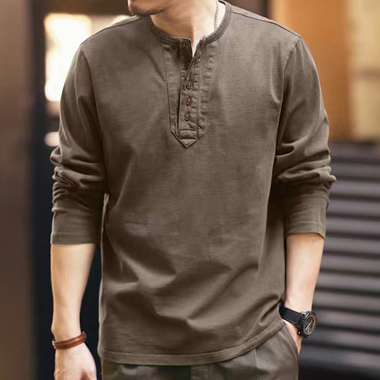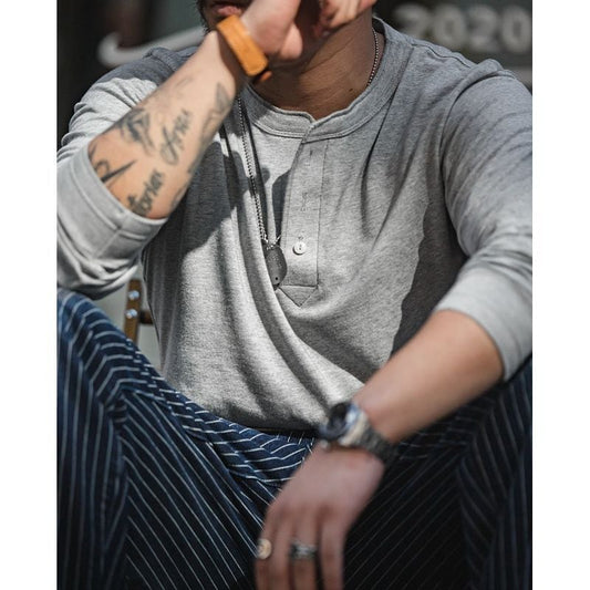 アメリカンヴィンテージ ヘンリーネック ロングTシャツ(2Colors)- T229
