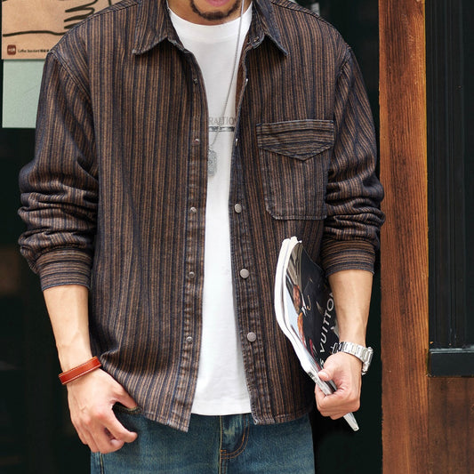 アメリカンレトロ ヘビーウォッシュ ストライプシャツ(2Colors)240121
