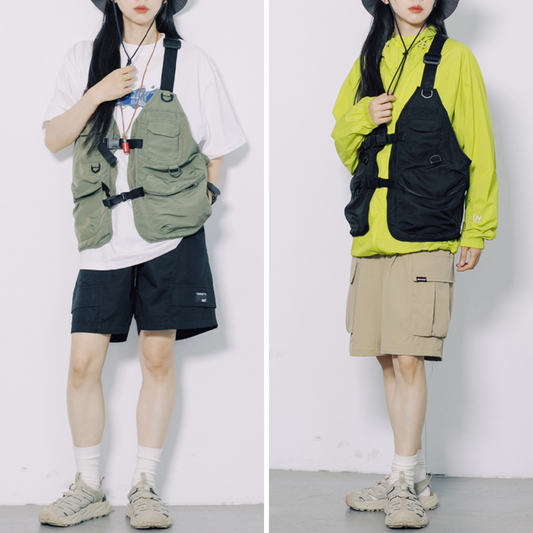 立体マルチポケット 防水 フード付ショートベスト(2Colors)240216