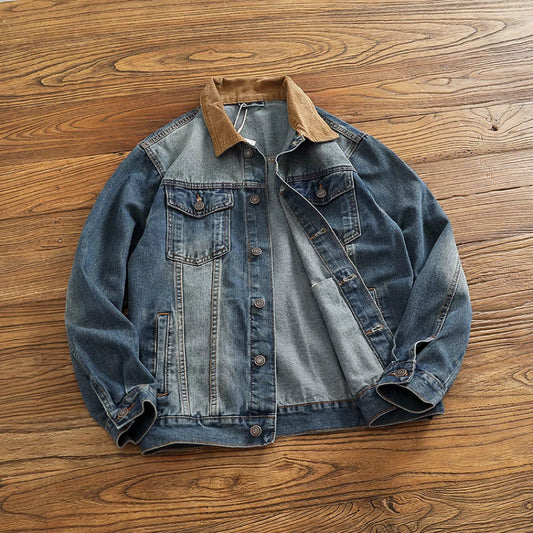 コーデュロイ襟 ウォッシュドデニムジャケット(1Color)240583