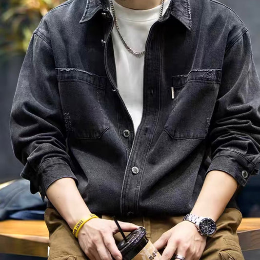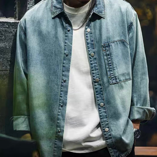 縦ポケット付 ハードウォッシュ デニムシャツ(1Color)250059