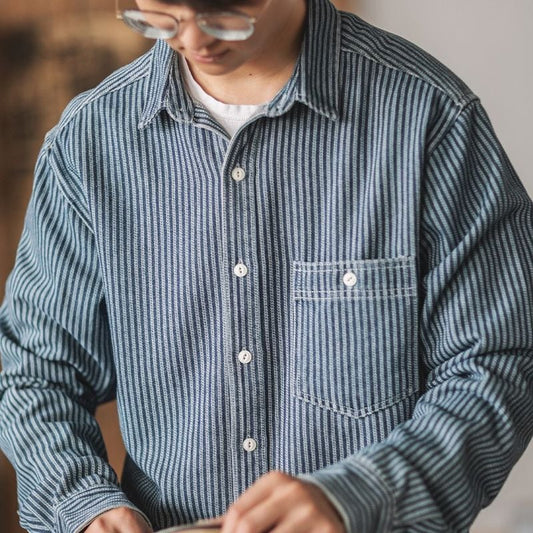 ストライプ デニム ワークシャツ(2Colors)- B994