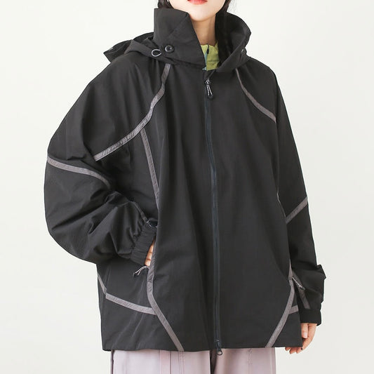 ラインデザイン ハイネック フード付ジャケット(6Colors)250731