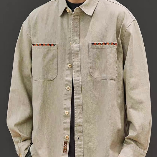 カラフル刺繍入り ウォッシュドシャツ(2Colors)250766