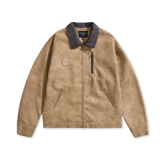 ワンポイントカラー フェイクレザー ジャケット(2Colors)250767