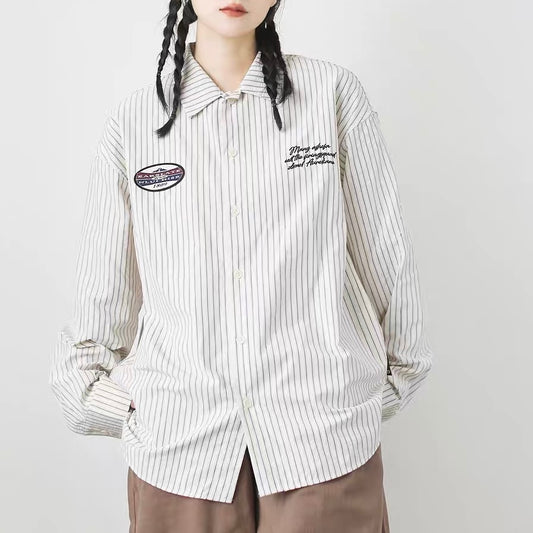 刺繍 ワッペン付 レトロ ストライプシャツ(1Color)250776