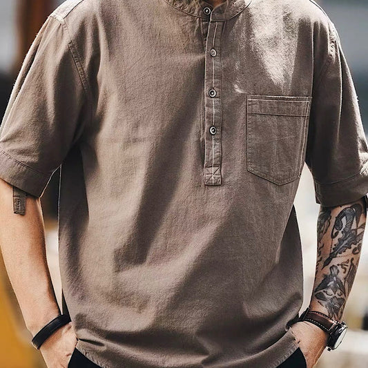 ヘビーウェイト シンプル ヘンリーネックTシャツ(4Colors)250748