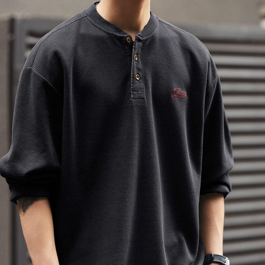 刺繍 ワッフル ヘンリーネックプルオーバー(2Colors)250800