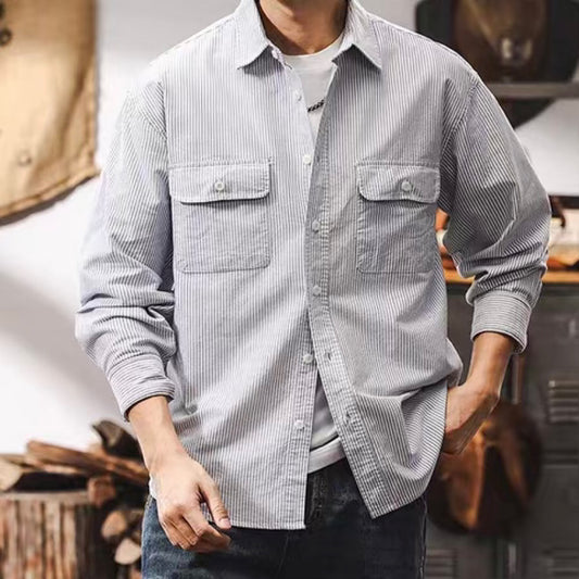 ボックスプリーツポケット付 長袖シャツ(3Colors)250744