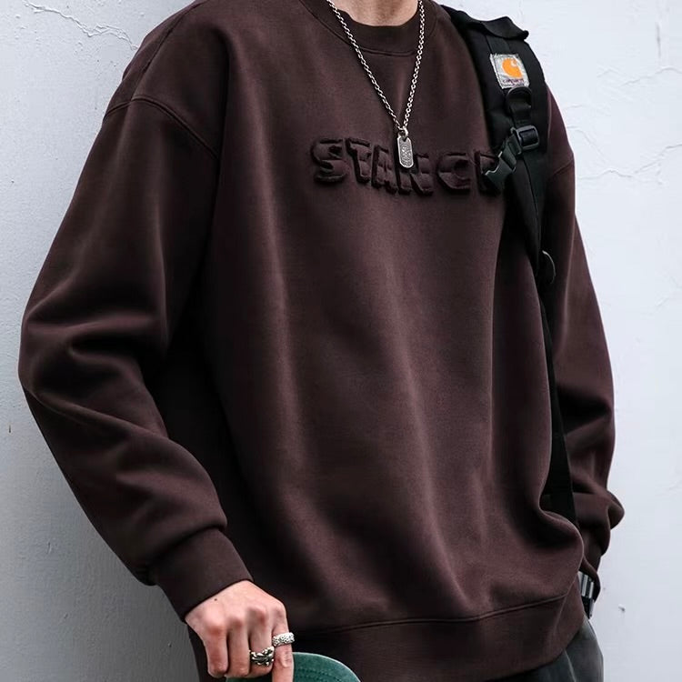 レトロプリント 裏起毛 スウェットプルオーバー(2Colors)260012