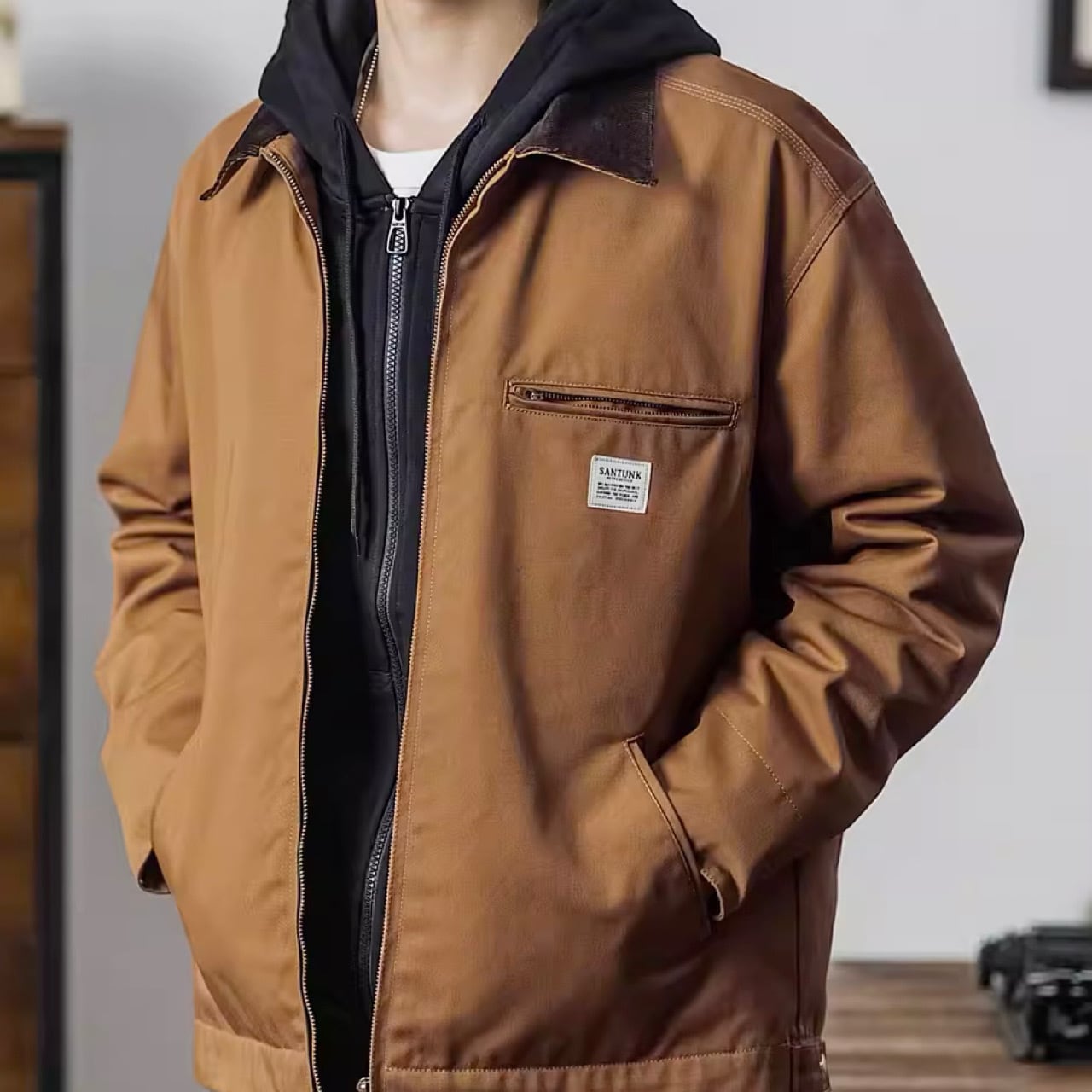 タフなワークジャケットは男らしさを演出するアイテムです。