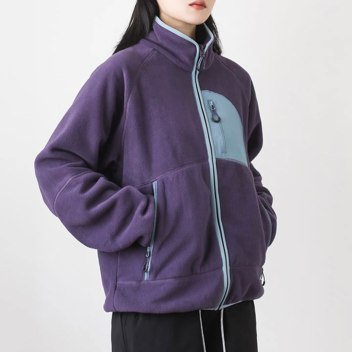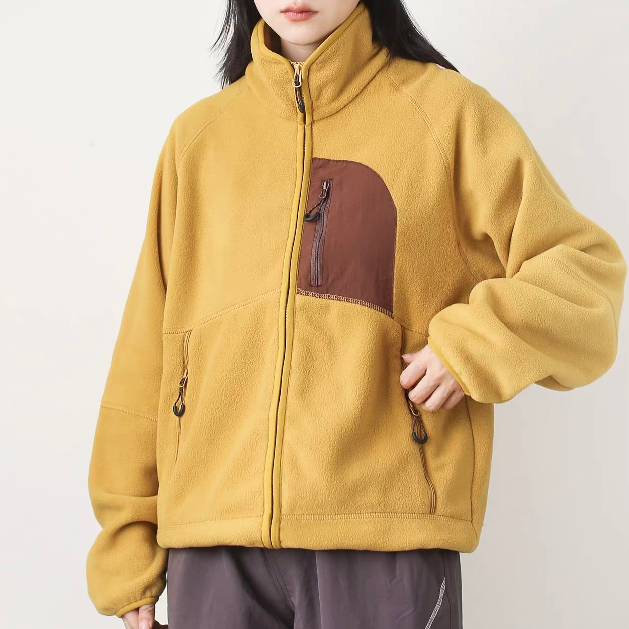 アクセントカラー スタンドネック フリースジャケット(4Colors)260010