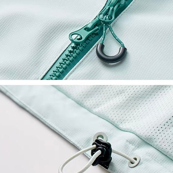 調整可能なフードと全開ジッパーで、風の強い日でも安心。
