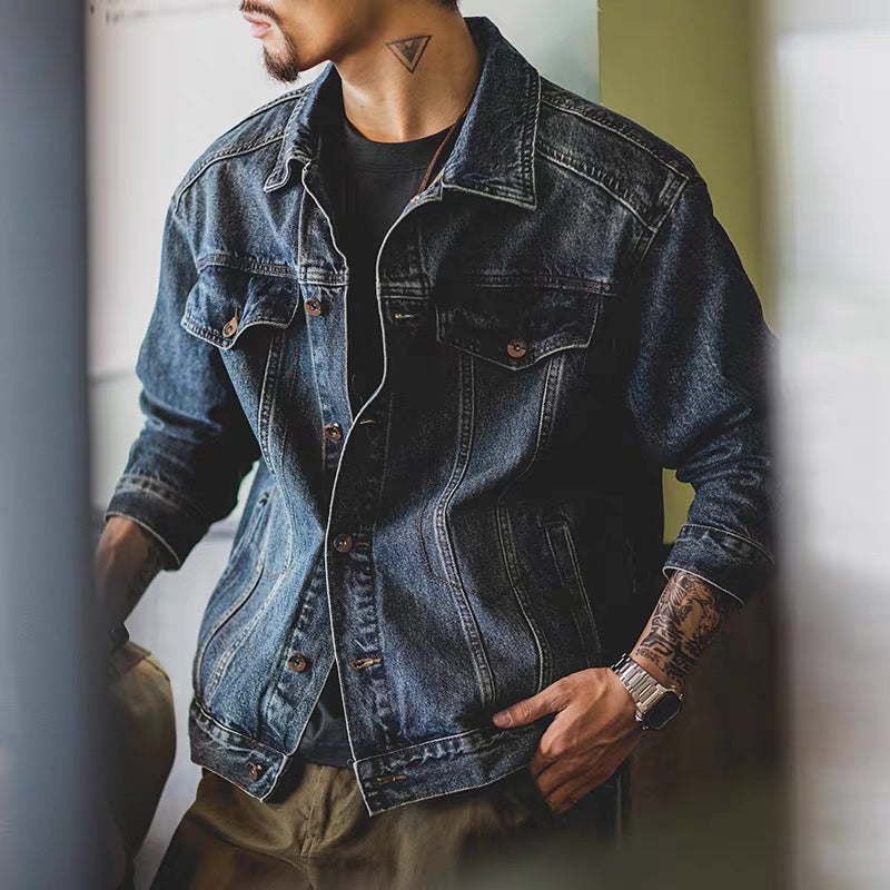 アメリカンレトロウォッシュブルーデニムジャケットは、街中でのカジュアルな散策から、自然の中でのアクティブな時間まで、幅広く活躍します。