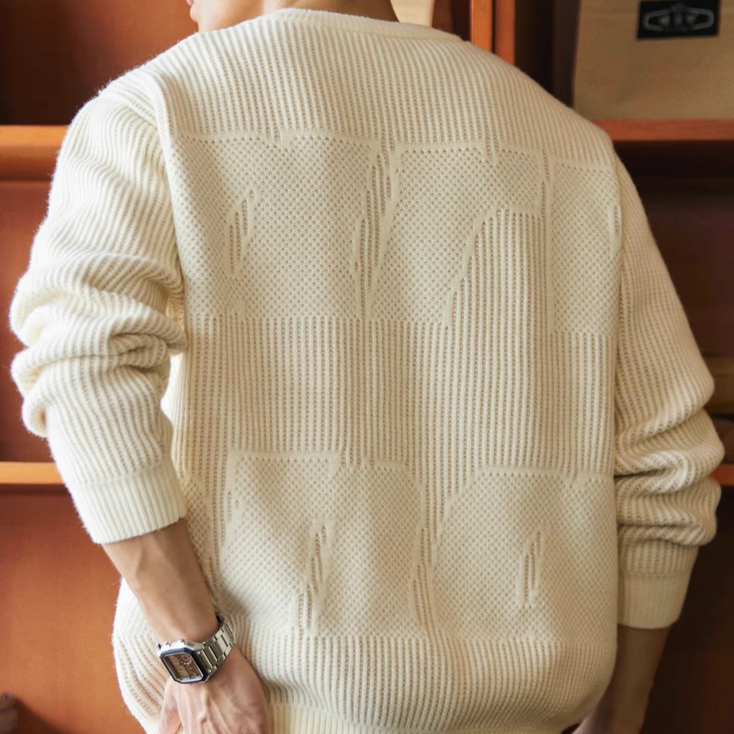 ウェーブデザイン ラウンドネック カーディガン(3Colors)250977