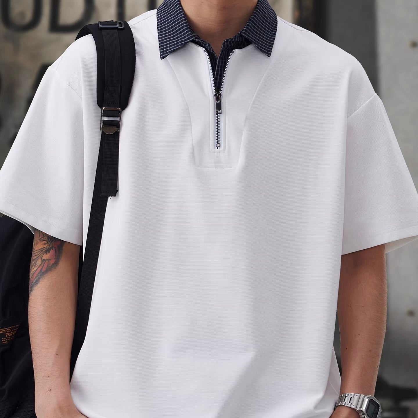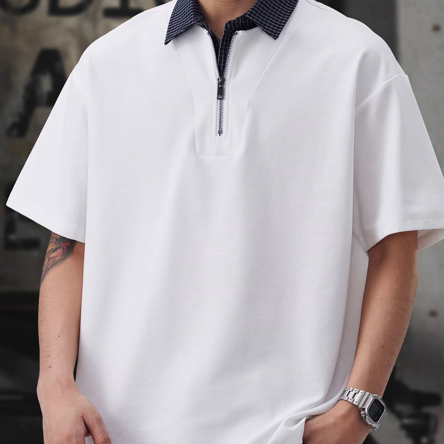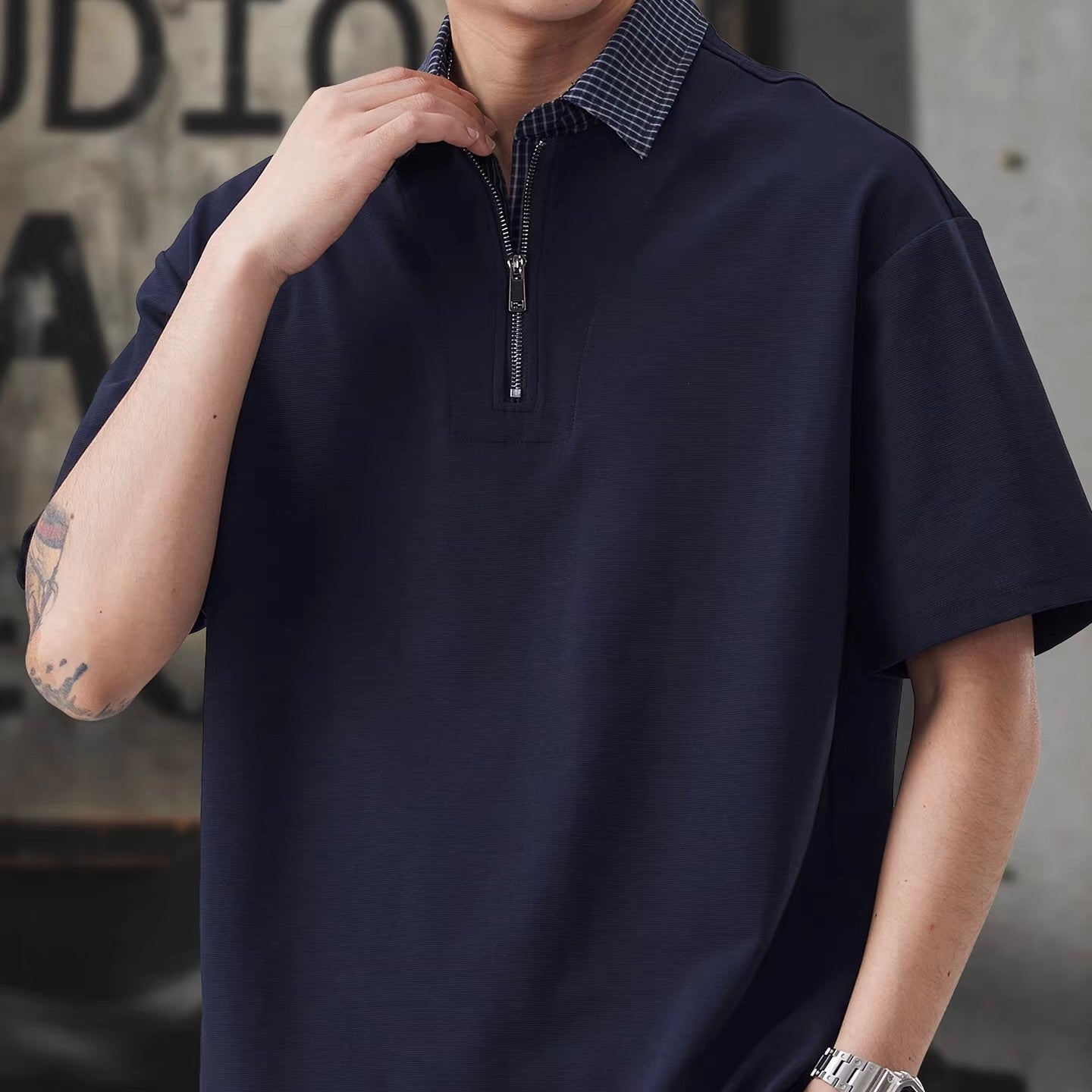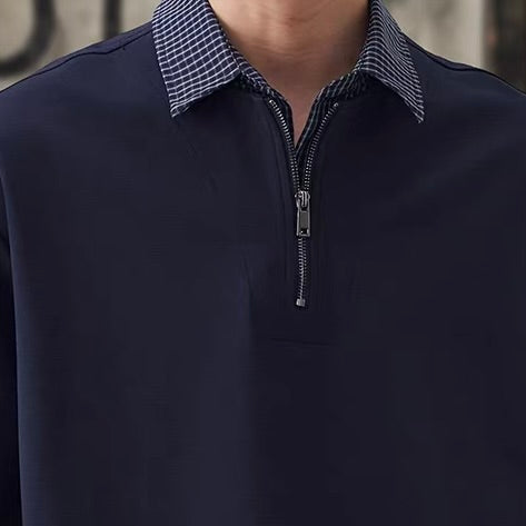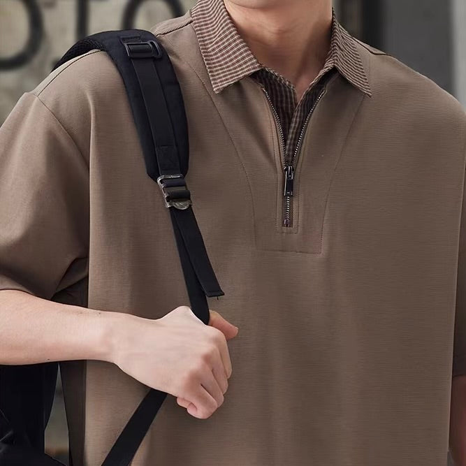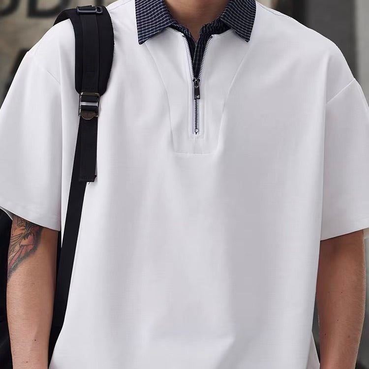 チェック襟付き ハーフジップポロシャツ(3Colors)260154