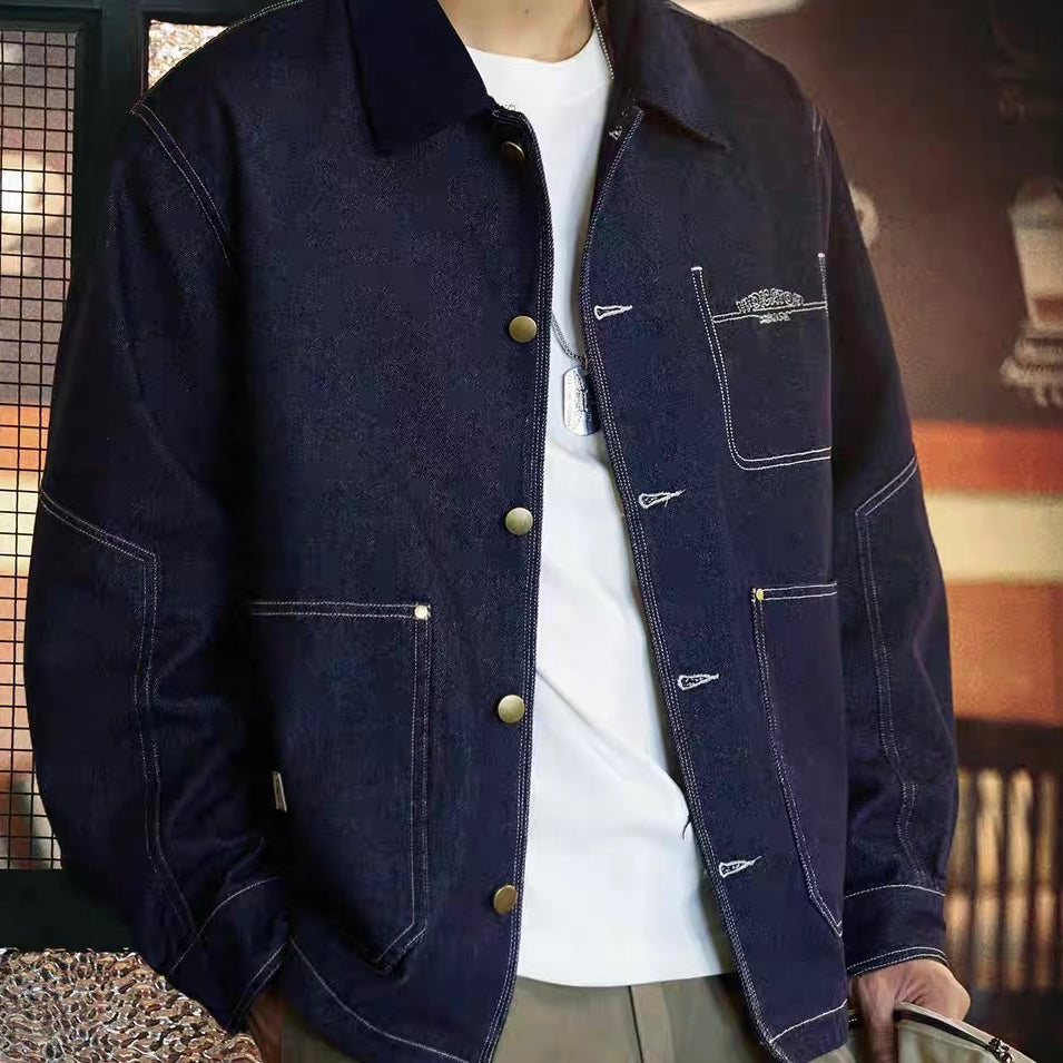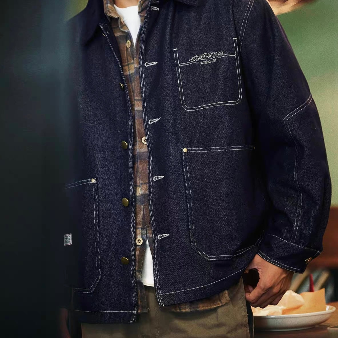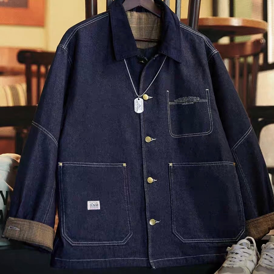 コーデュロイ襟 デザインステッチ デニムジャケット(1Color)250827