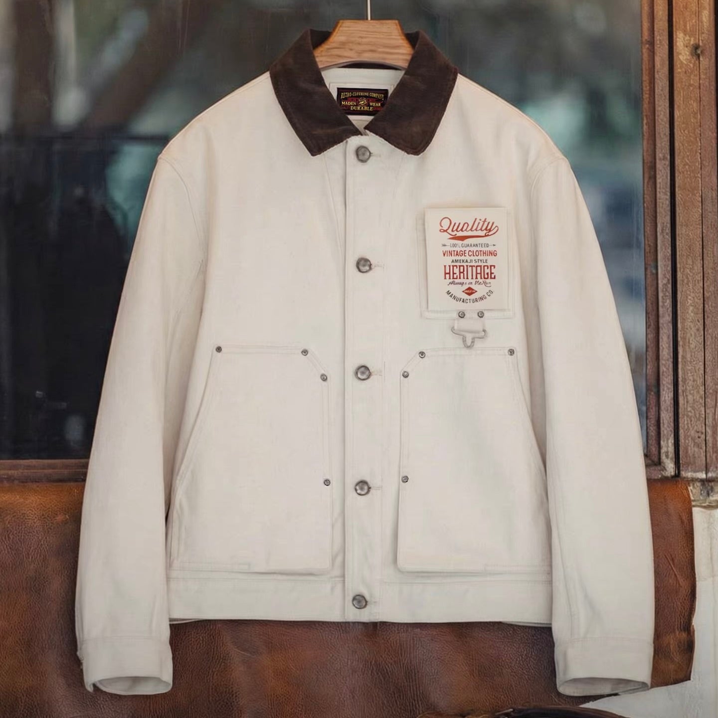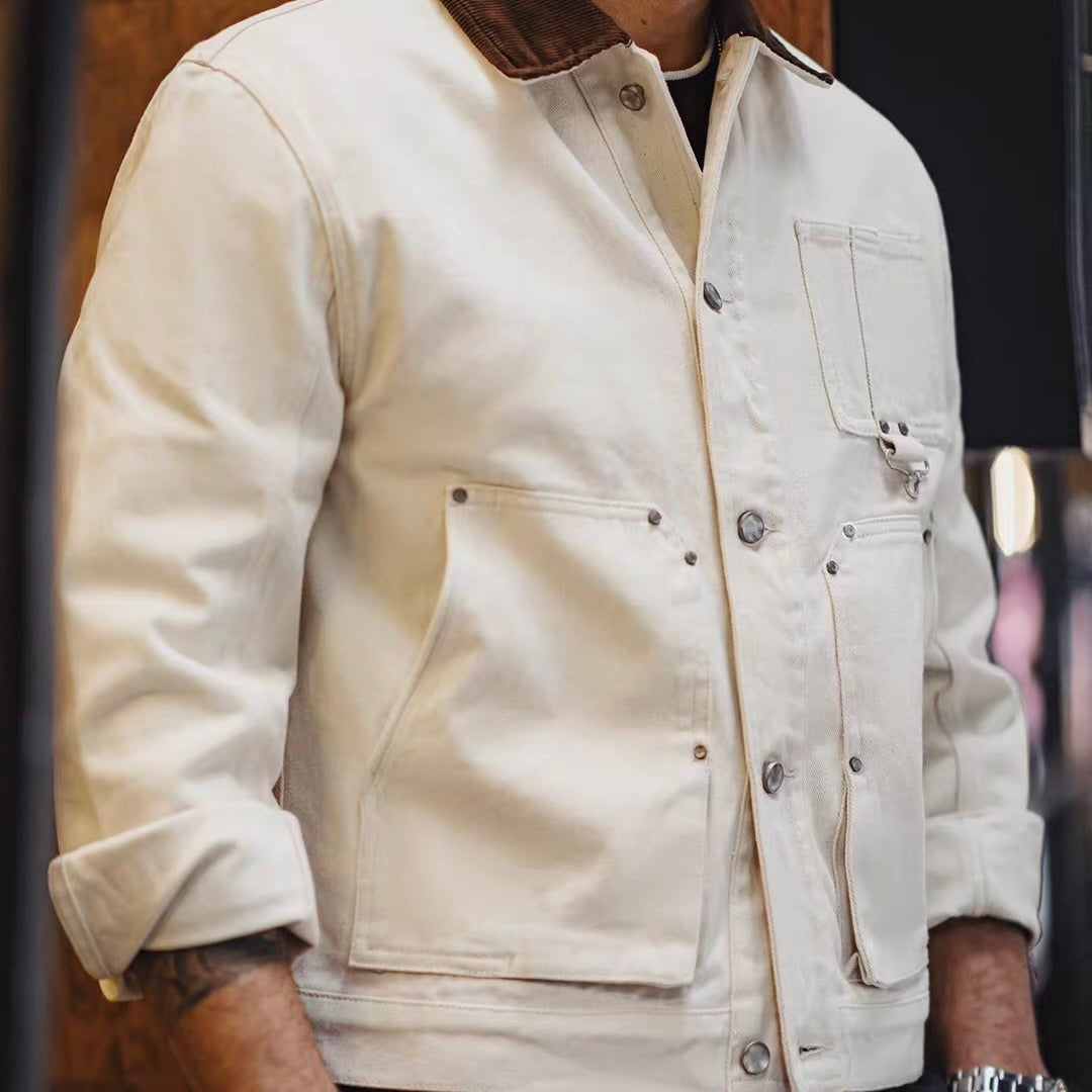 コーデュロイ襟 ホワイト ワークジャケット(1Color)260088