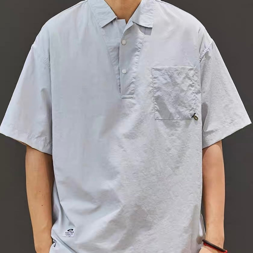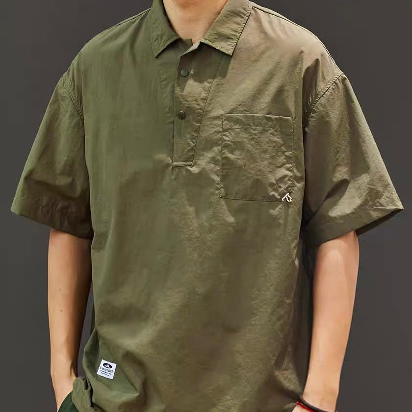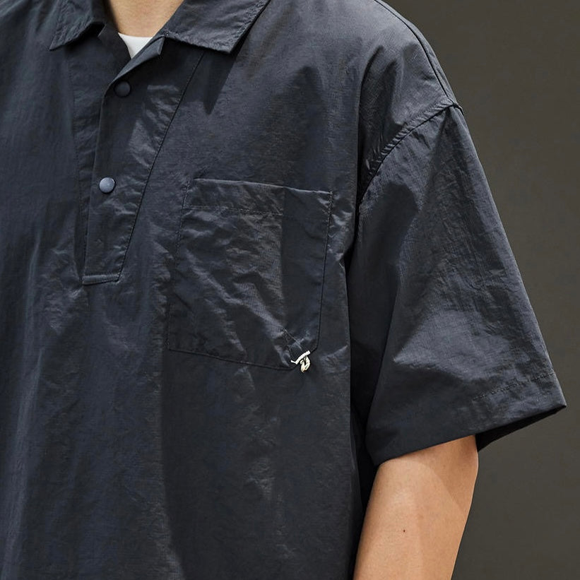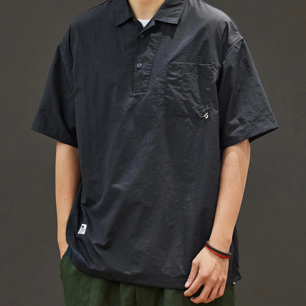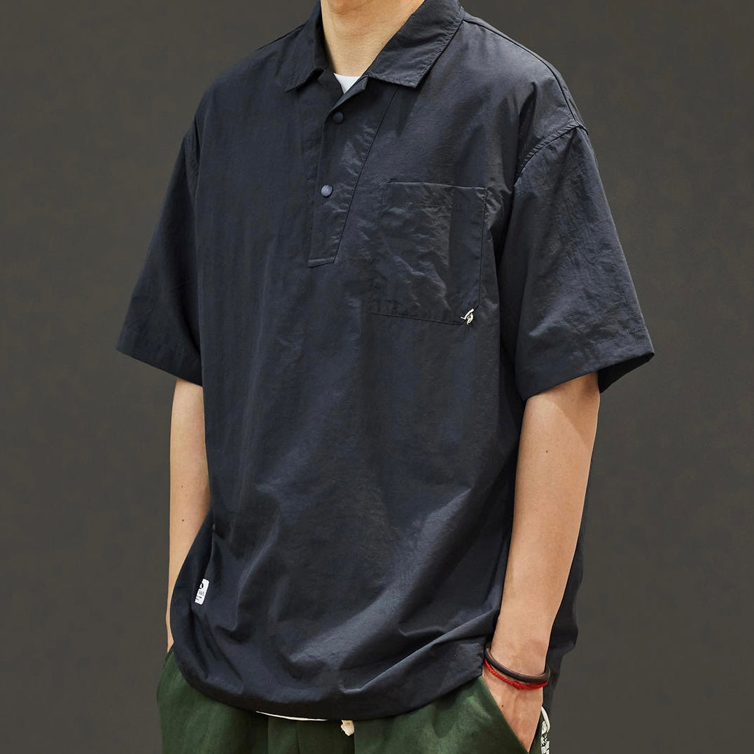 カジュアルなポロシャツスタイルとボタンダウン襟が特徴で、ゆったりとしたシルエットが快適な着心地を提供。
