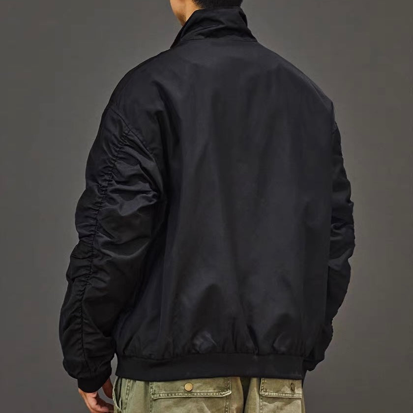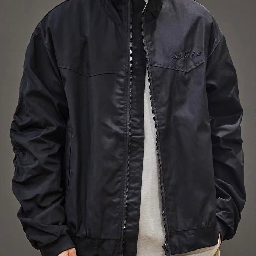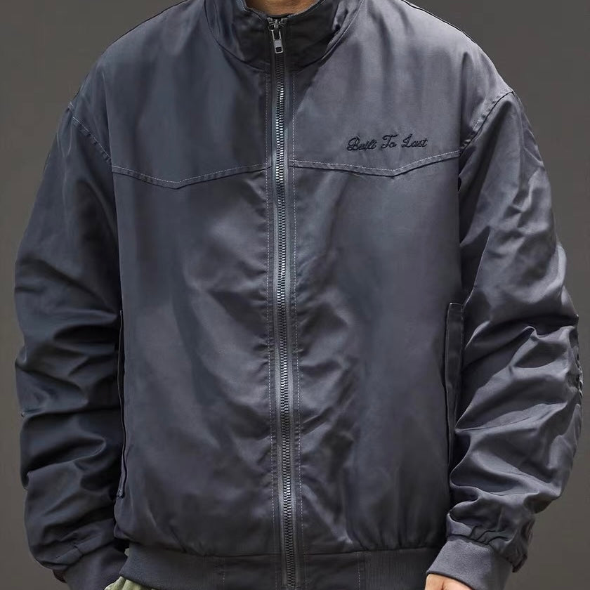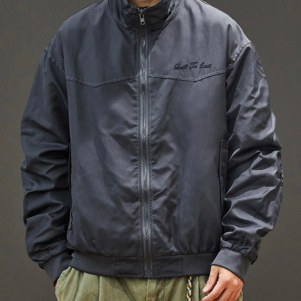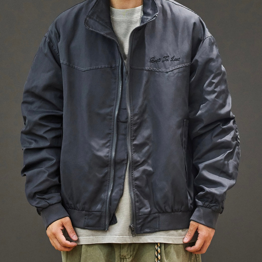 洗練されたカジュアルスタイルを求めるあなたに最適な刺繍スタンドカラーのワークジャケット。