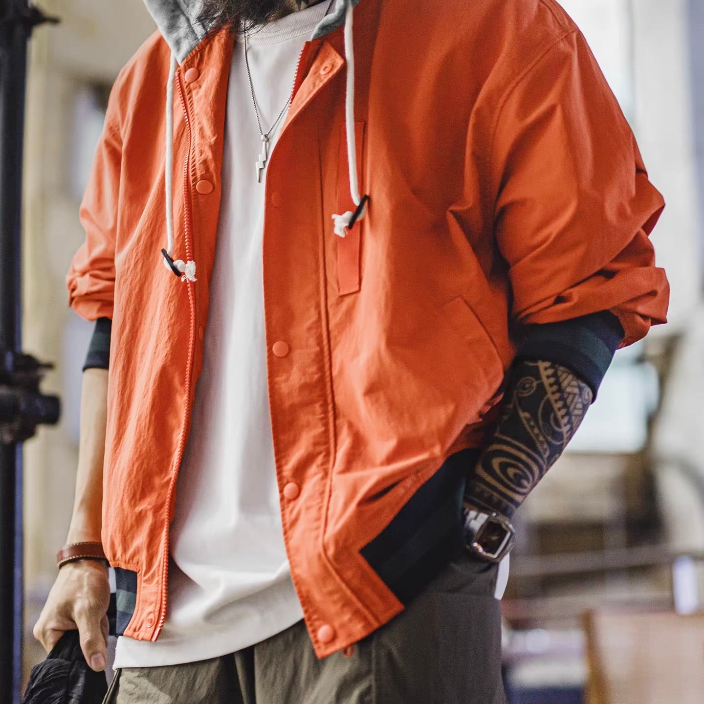 フェイクレイヤード フード付ライトジャケット(1Color)260114