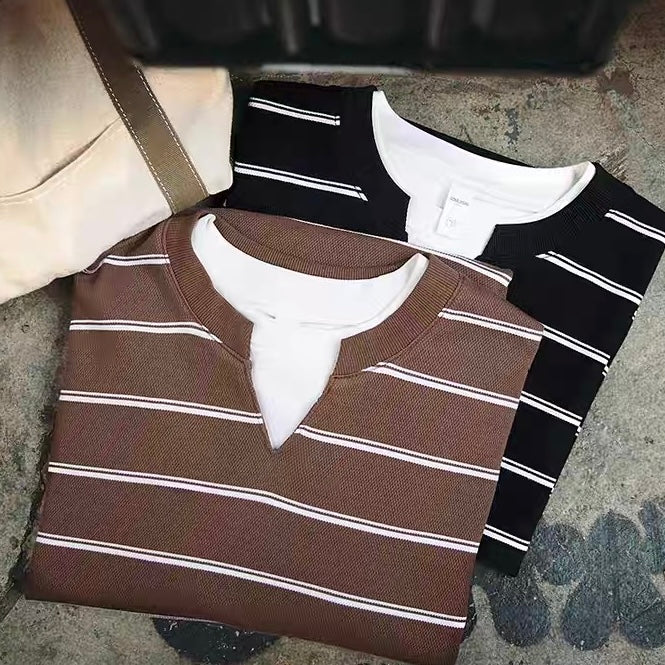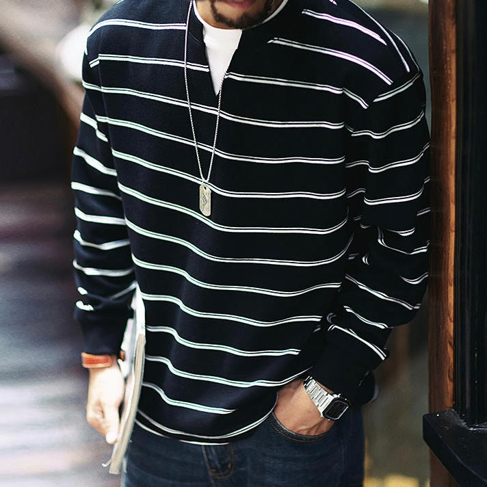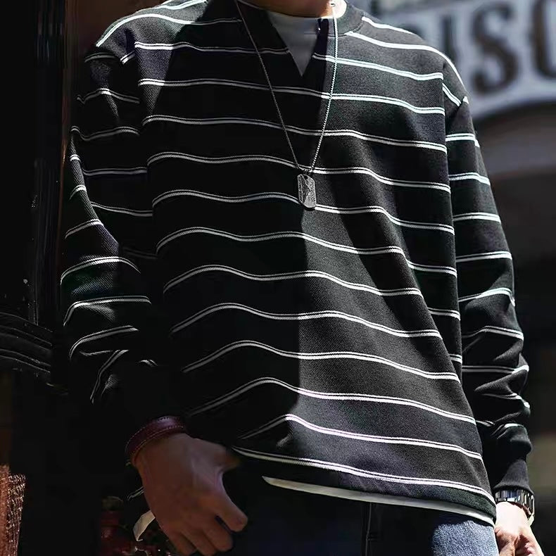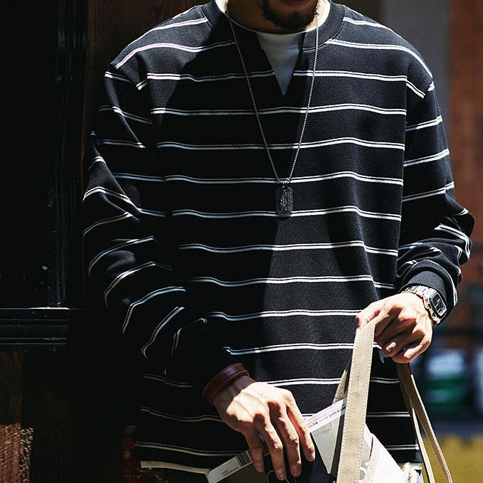 フェイクレイヤード ボーダー スウェットプルオーバー(2Colors)250647