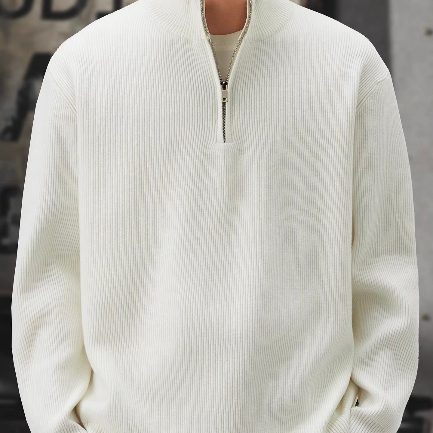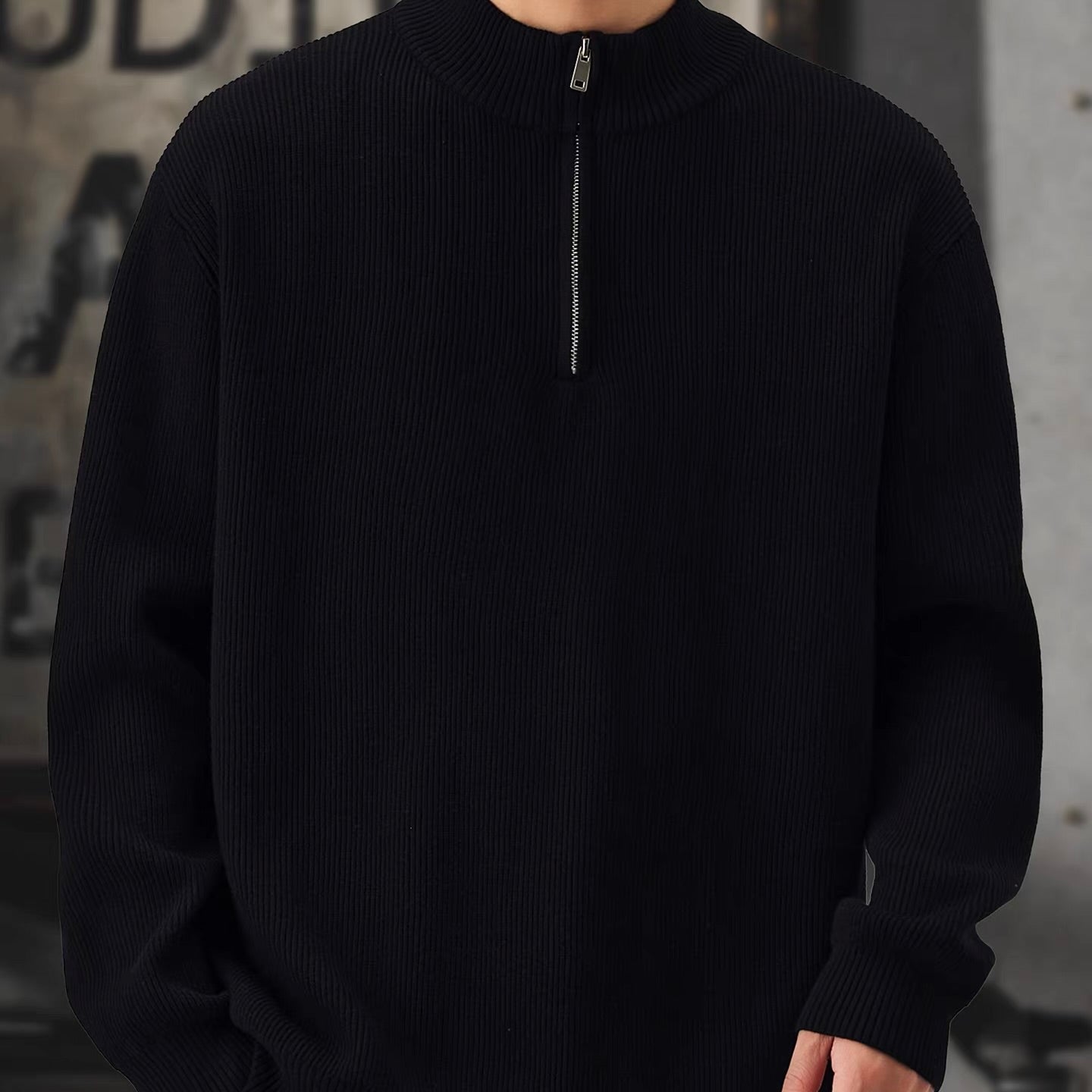 「ハーフジップ スタンドカラー 厚手 セーター」は、寒い季節にぴったりの一着です。