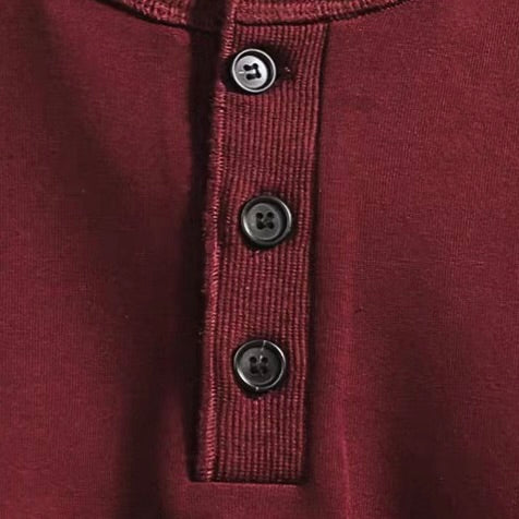 ボタン付きのヘンリーネックデザインが、さりげないおしゃれ感をプラスします。