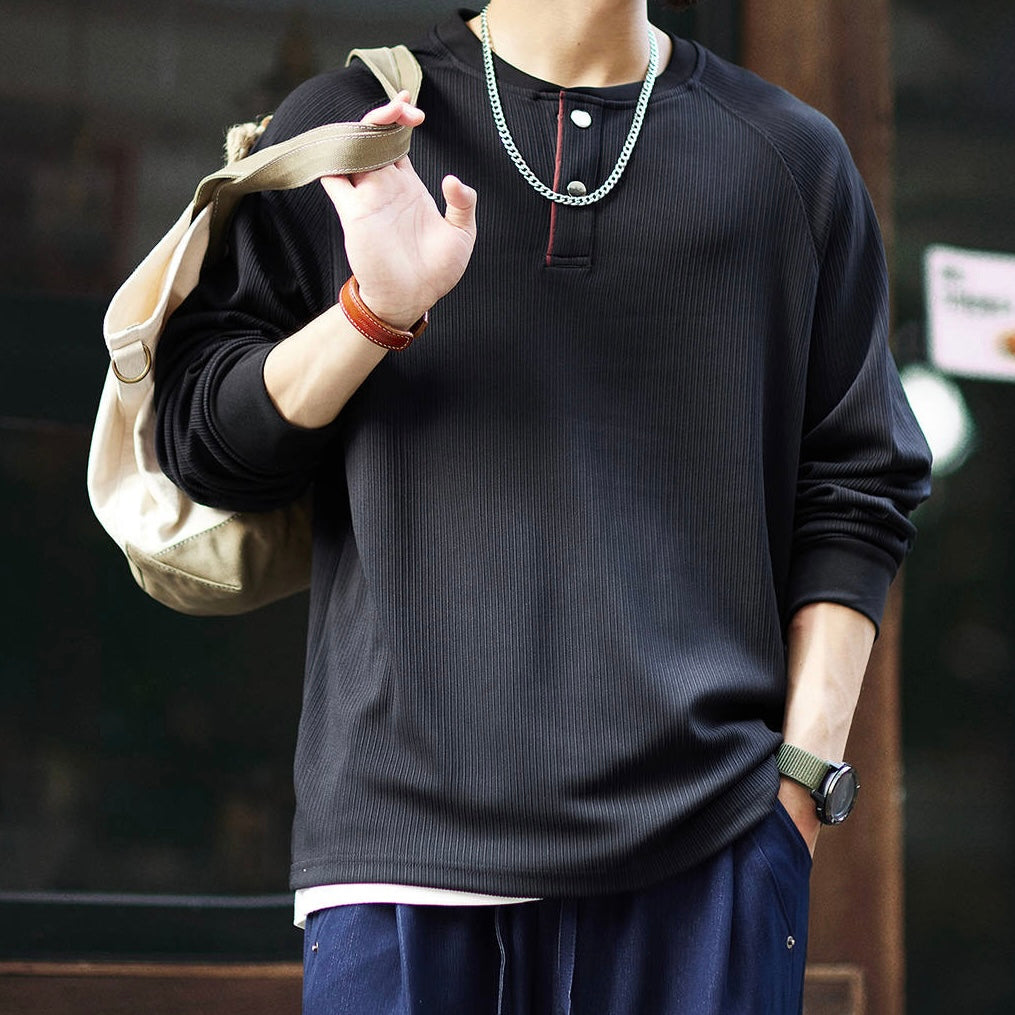 刺繍 ワッフル ヘンリーネックプルオーバー(2Colors)250800