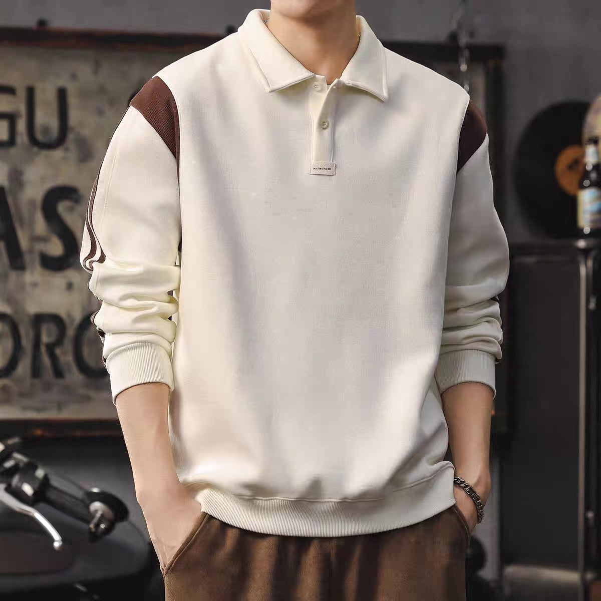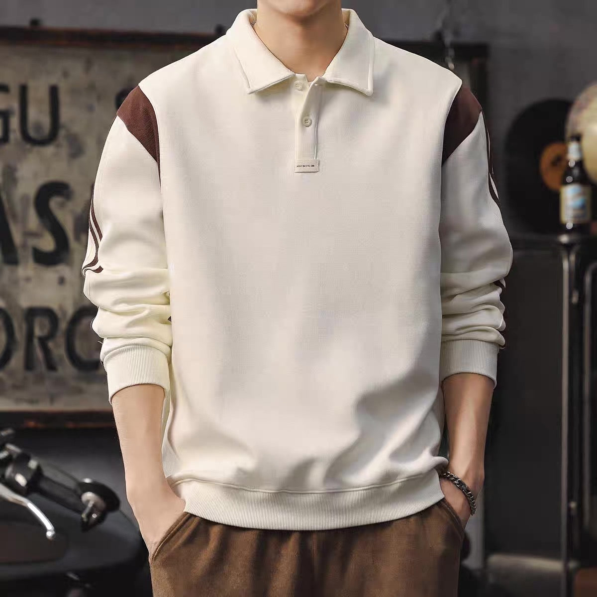 ロールアップ可能 ノーカラーシャツ(5Colors)250896