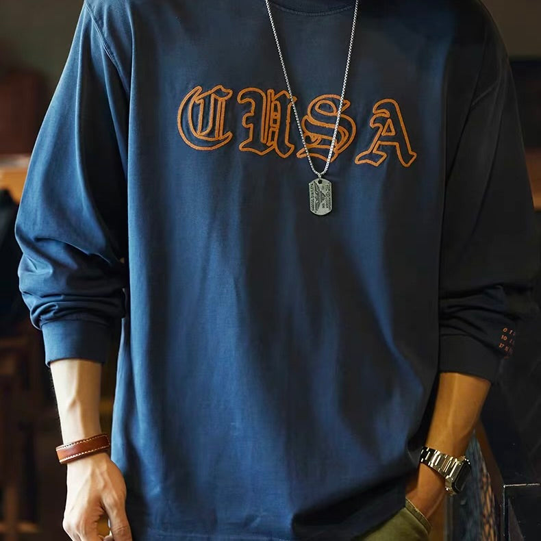 ロゴ刺繍 ダメージ 長袖Tシャツ(1Color)250694