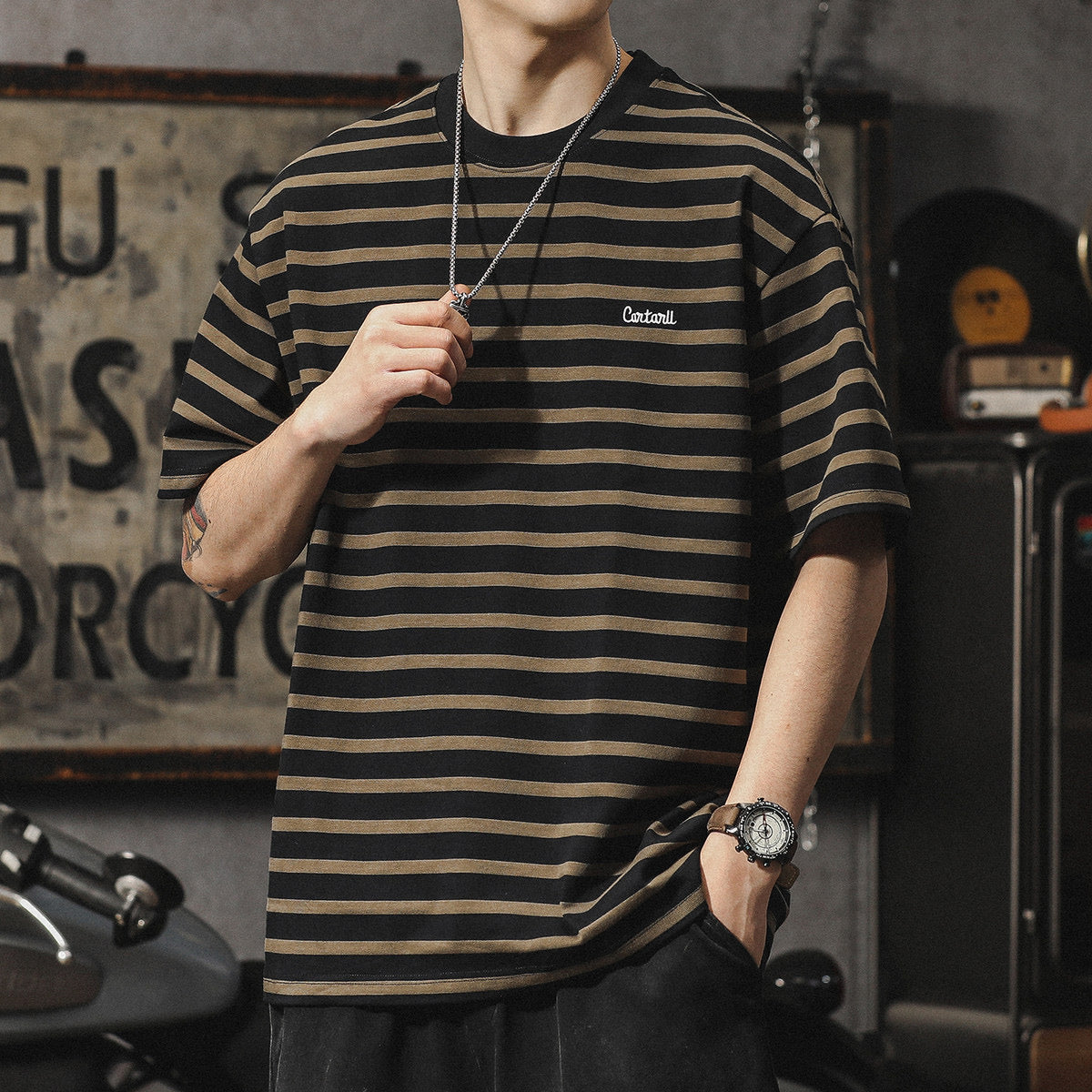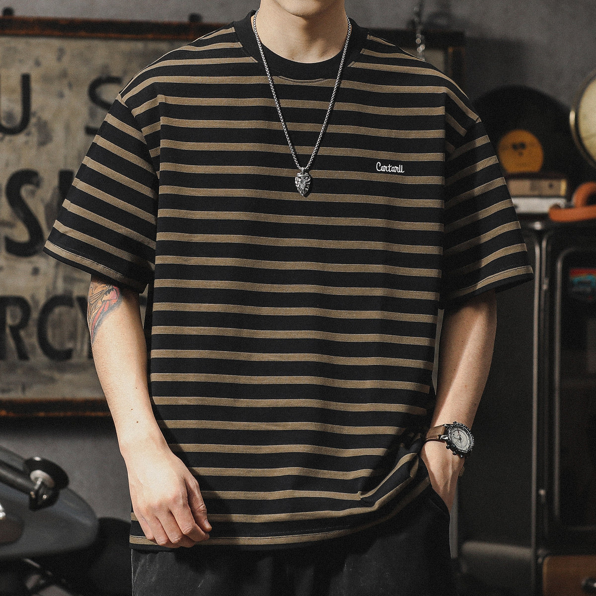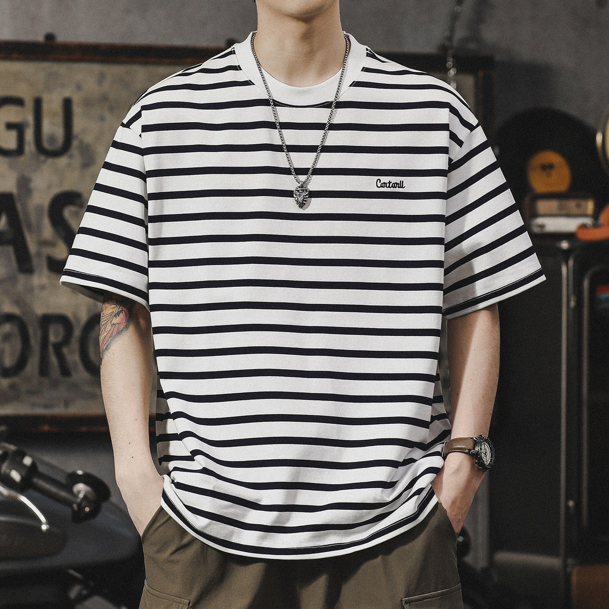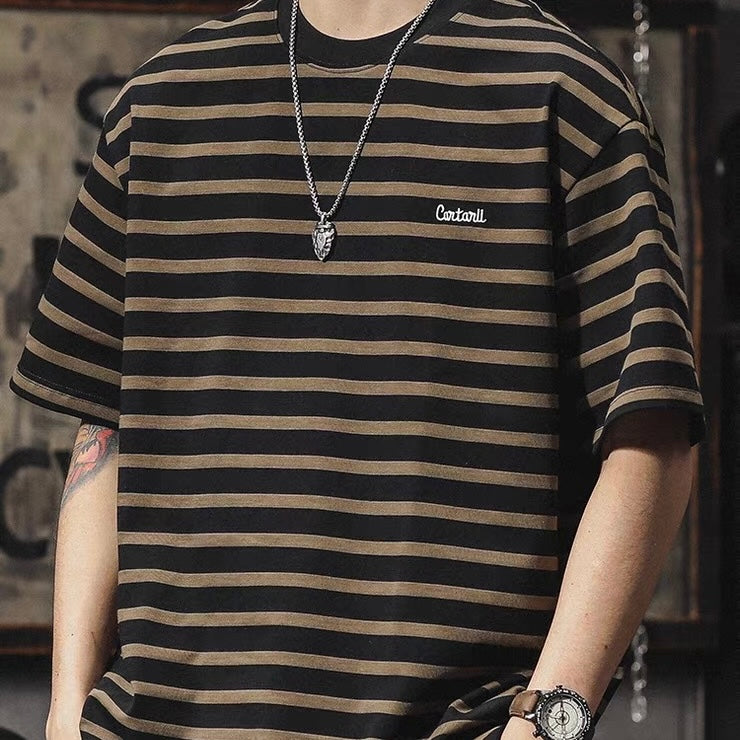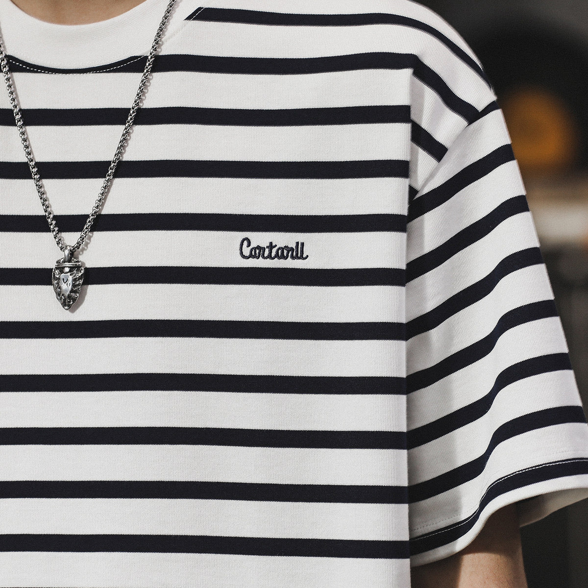 ロゴ刺繍 ボーダー Tシャツ(2Colors)250614