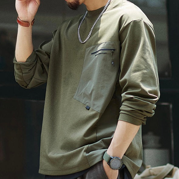 アシンメトリーパッチポケット付 長袖Tシャツ(1Color)250638