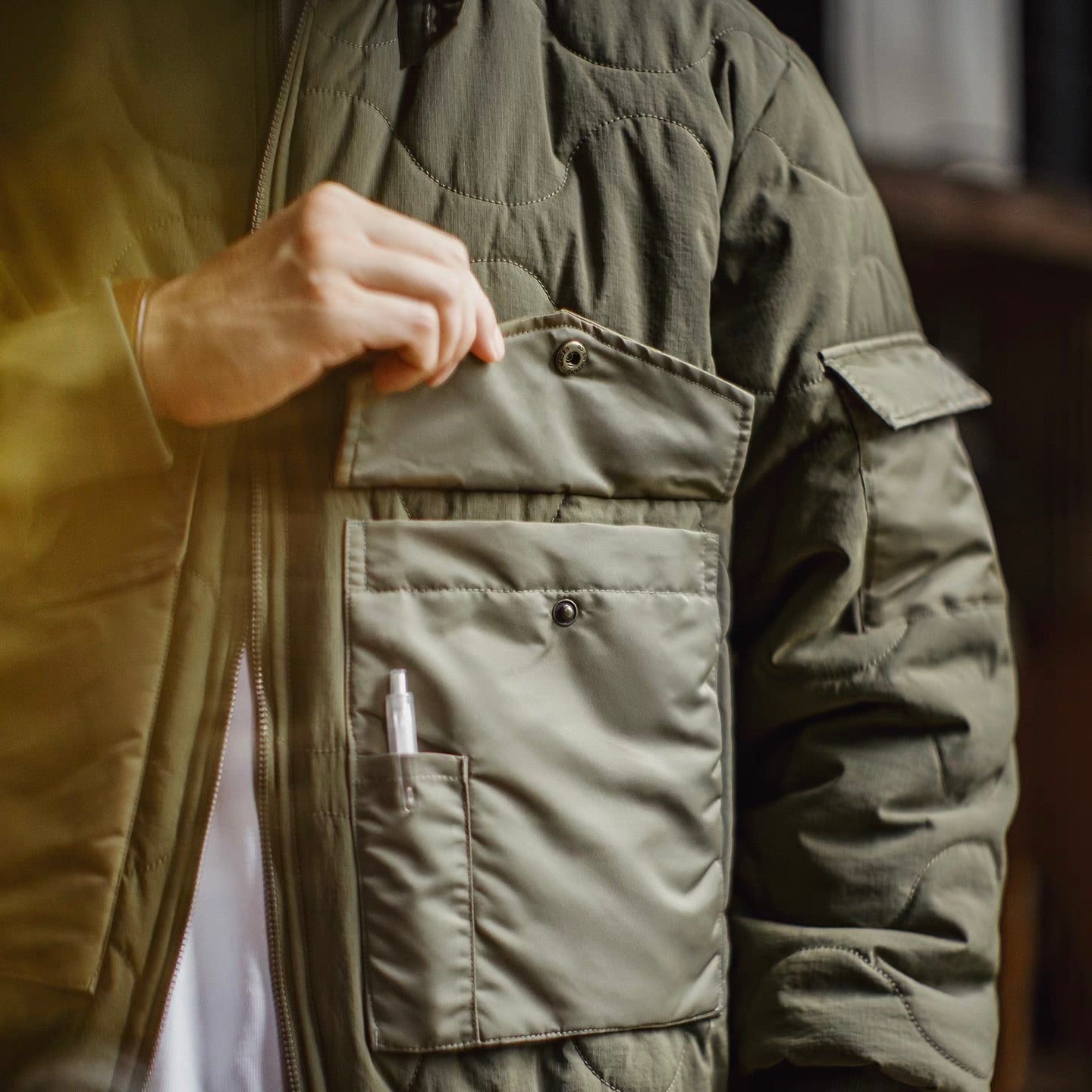 秋冬の定番・ミリタリーアウターを街でおしゃれに着こなす方法を解説。機能性とシルエットのバランスで“大人の余裕”を演出するコーデ術を紹介。