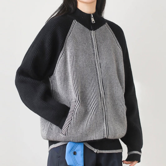 ストライプ スタンドカラー ニットプルオーバー(1Color)250982