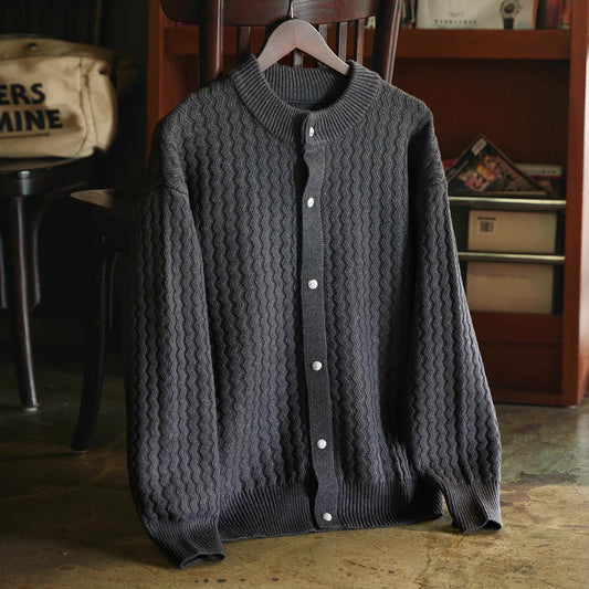 ウェーブデザイン ラウンドネック カーディガン(3Colors)250977