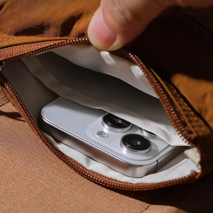 ある日、通勤電車で、肩ベルトを何度も直す人を見かけました。あの小さなストレスを、毎日くり返させたくない——それが、このバッグづくりの出発点です。