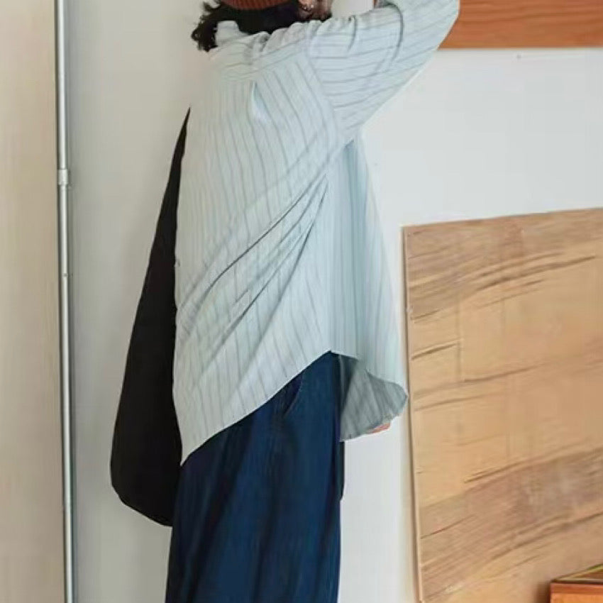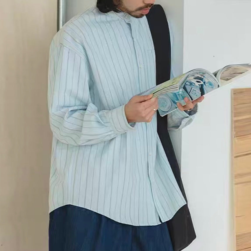 オーバーサイズ ストライプ ノーカラーシャツ(1Color)250271