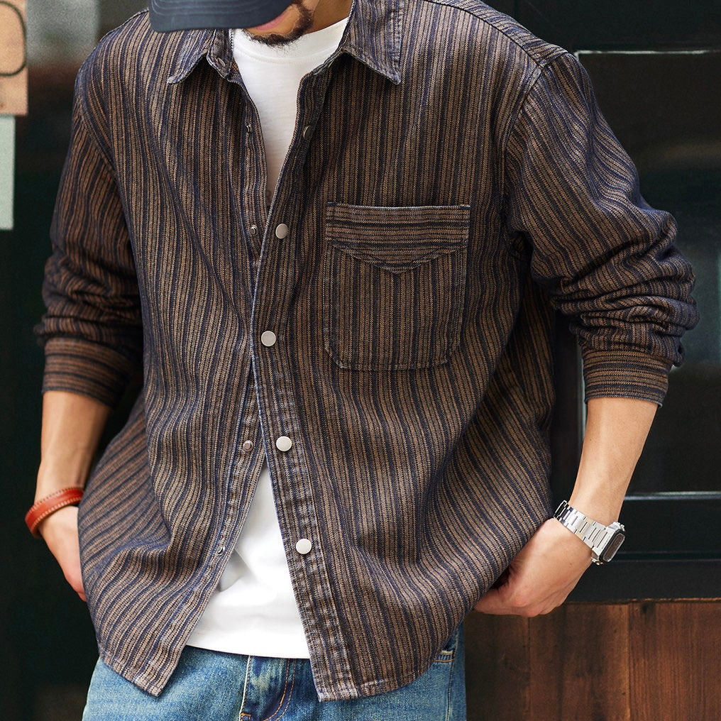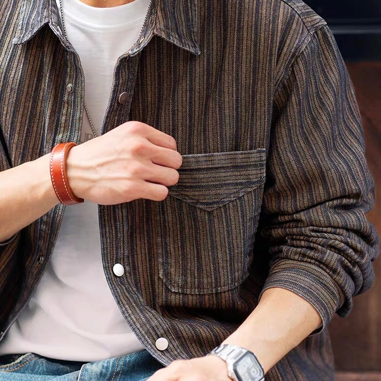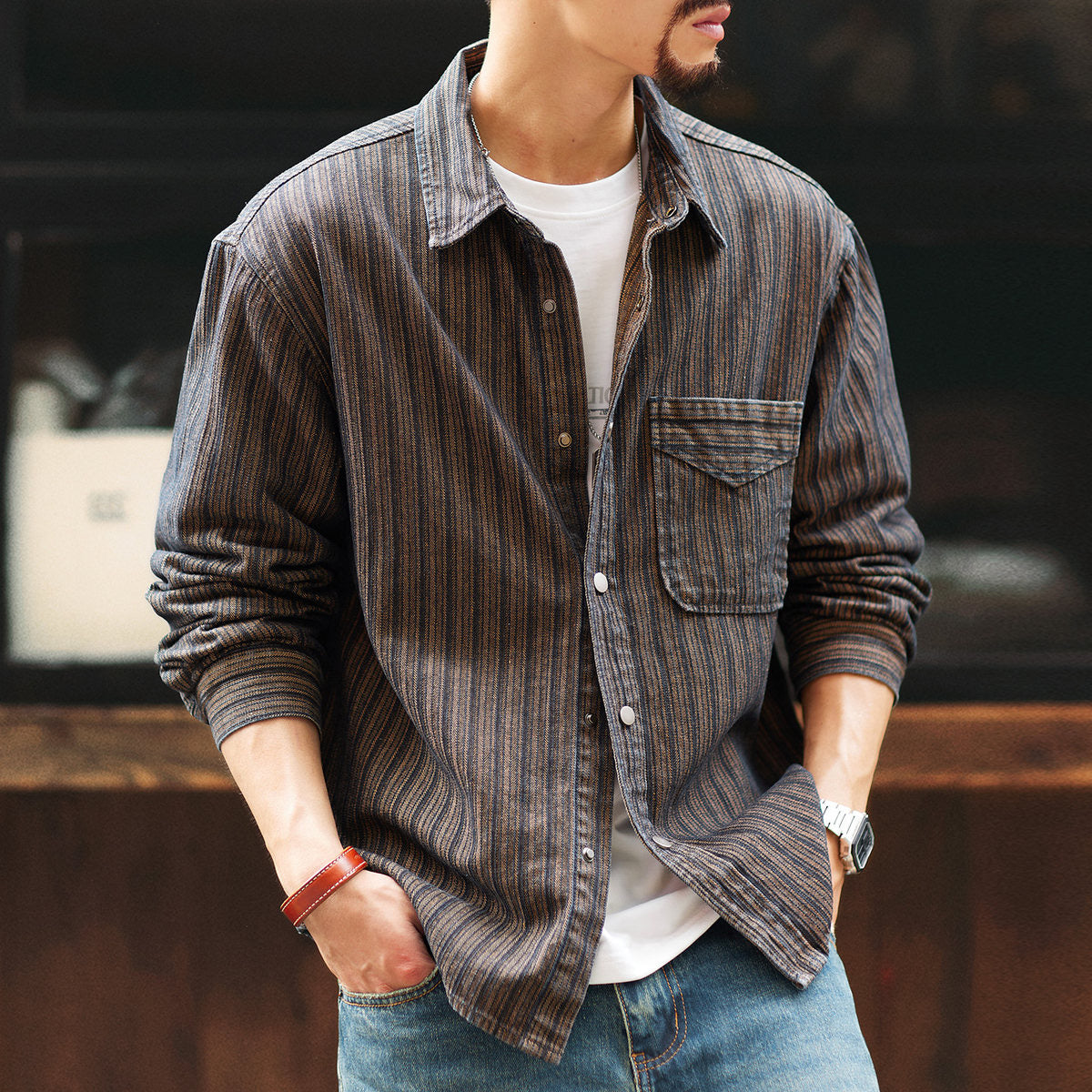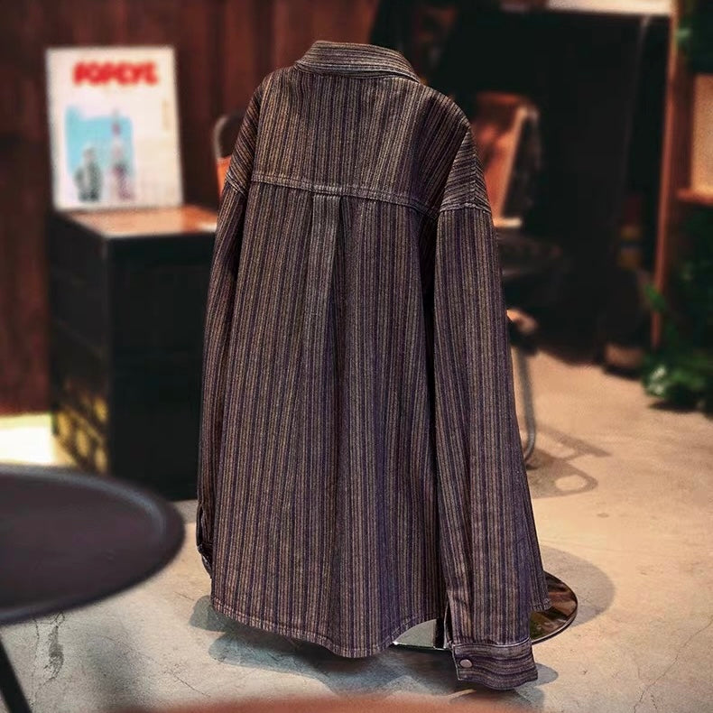 レトロ マルチストライプ 長袖シャツ(1Color)250703