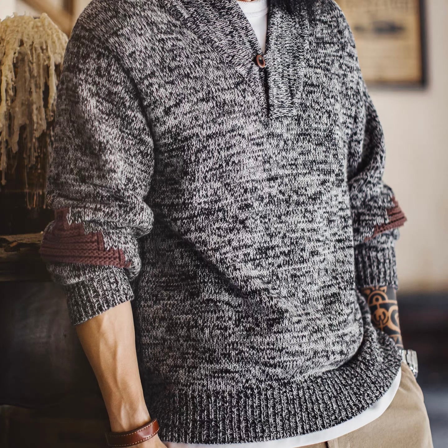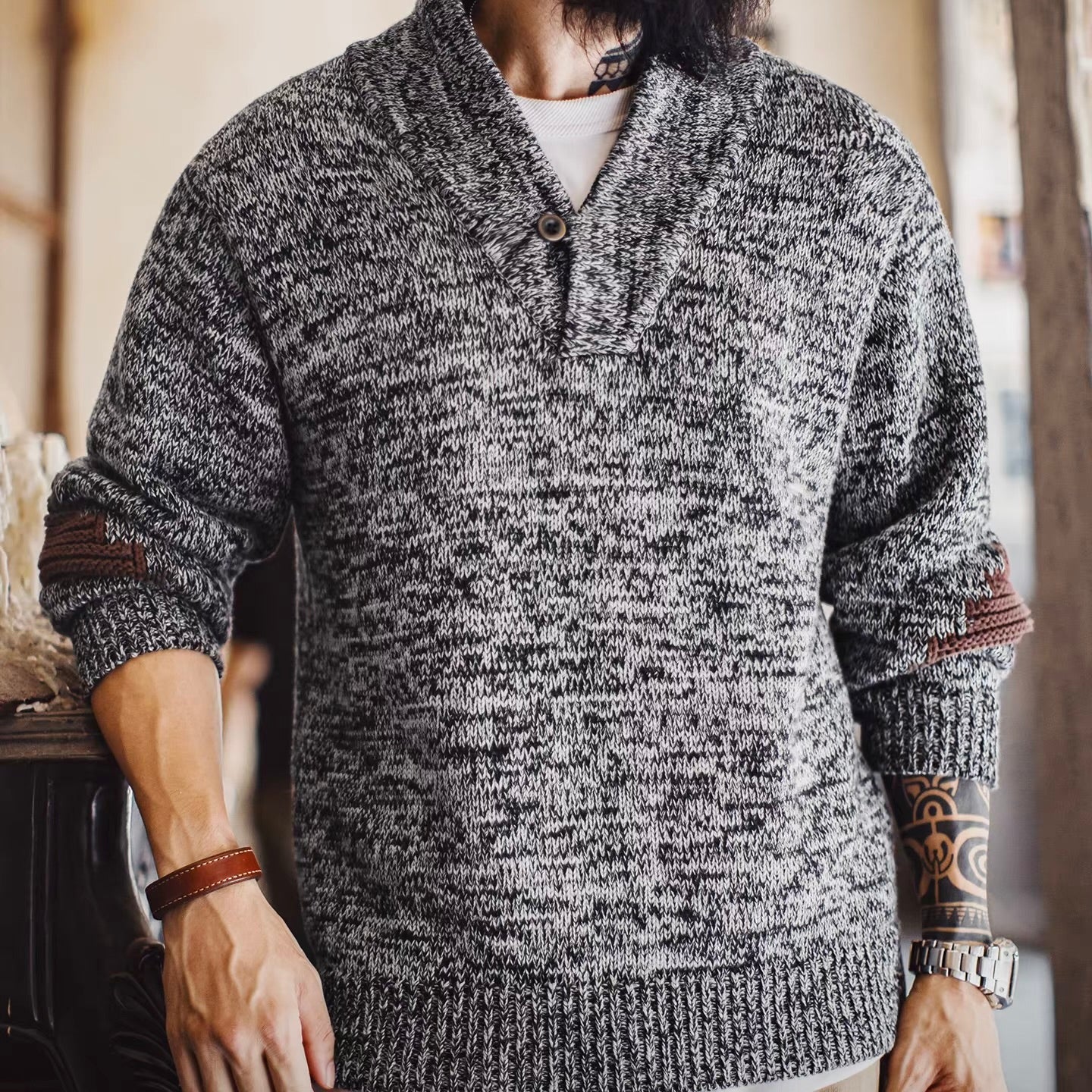 ショールカラー パッチワーク ニットプルオーバー(1Color)251080