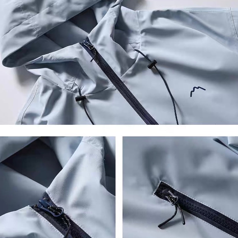 フードの調整機能とジッパー付きポケットで、急な天候変化にも安心。