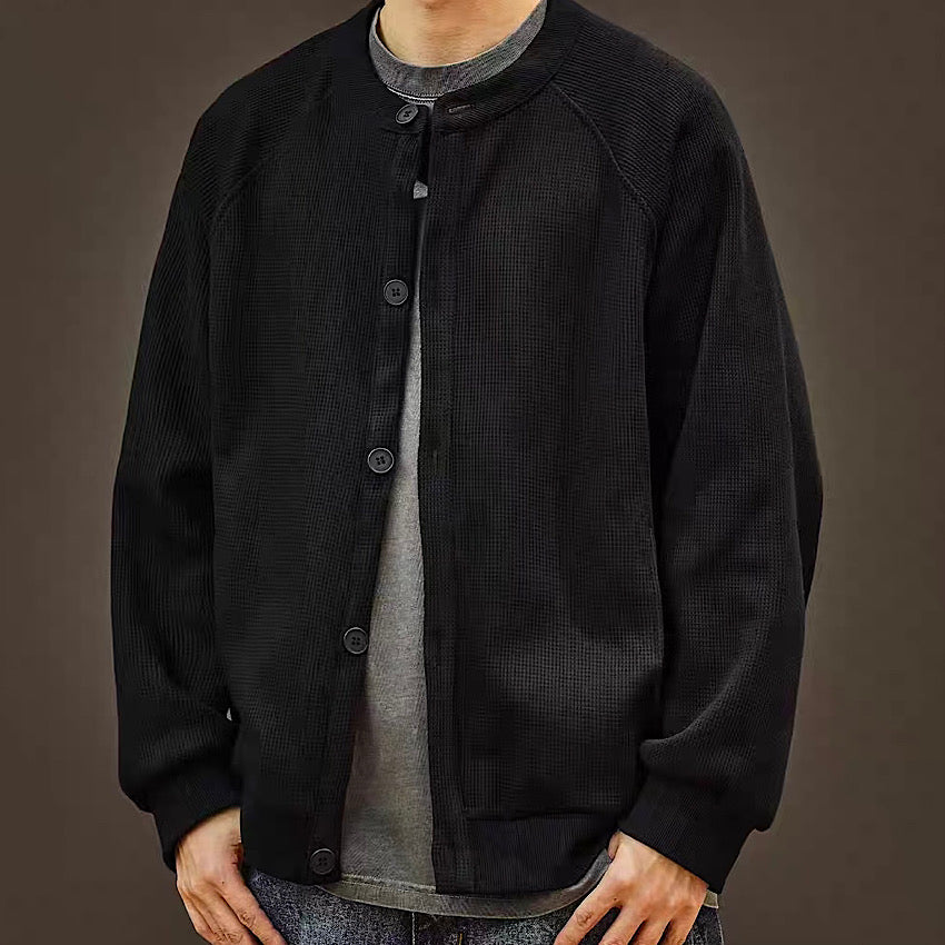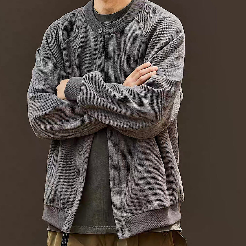 ゆったりとしたシルエットは動きやすさを追求し、春や秋の軽いアウターとして最適です。