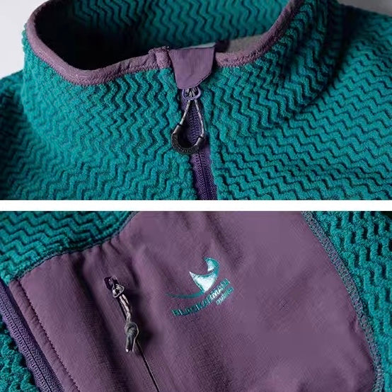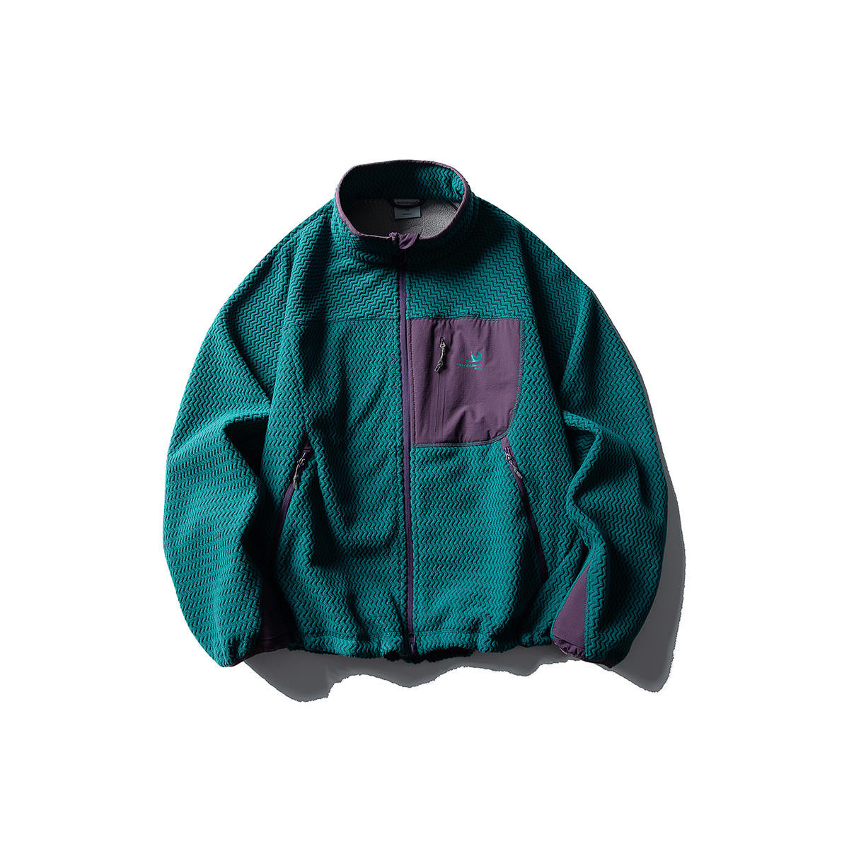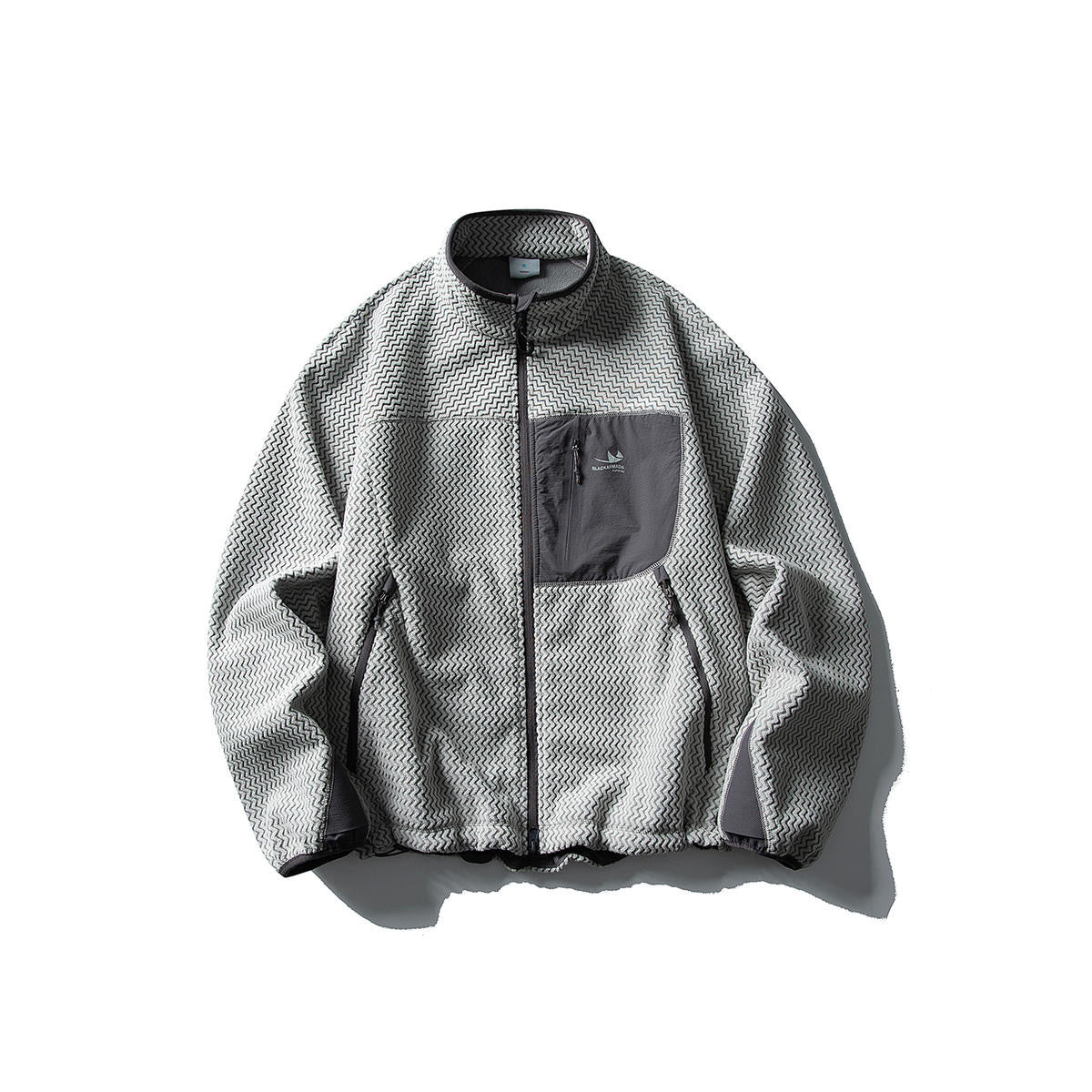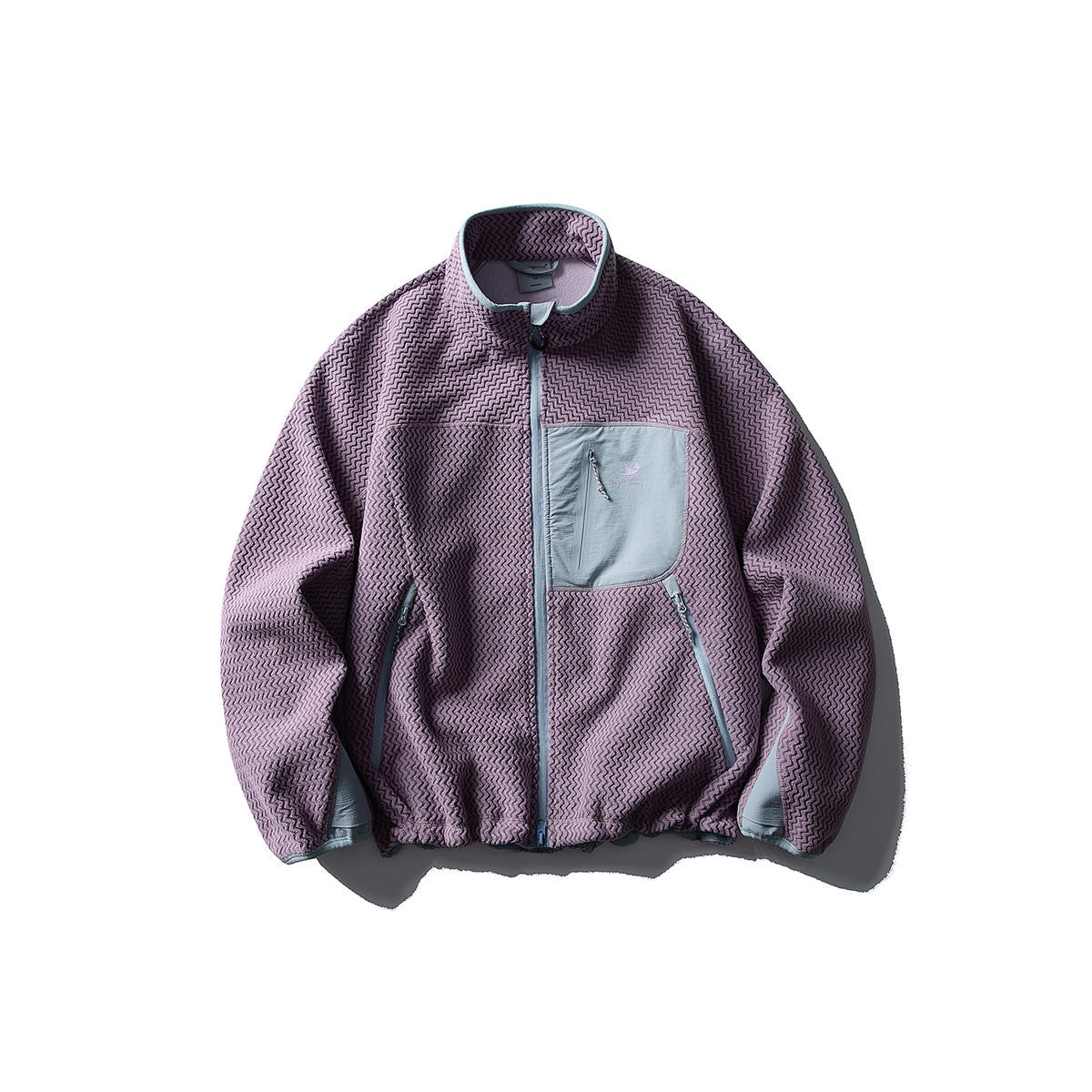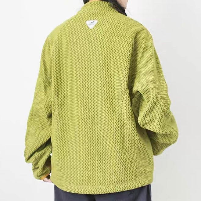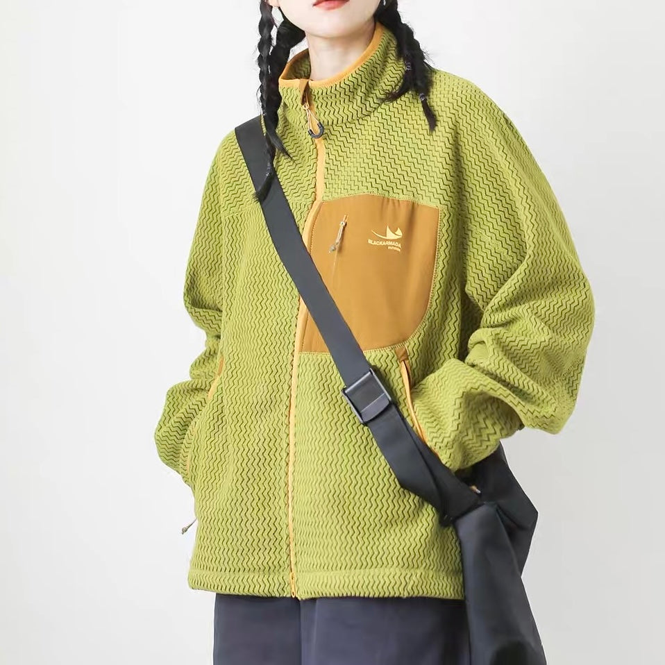 カジュアルな日常使いやアウトドアに最適なパッチポケット付スタンドカラー フリースジャケット。