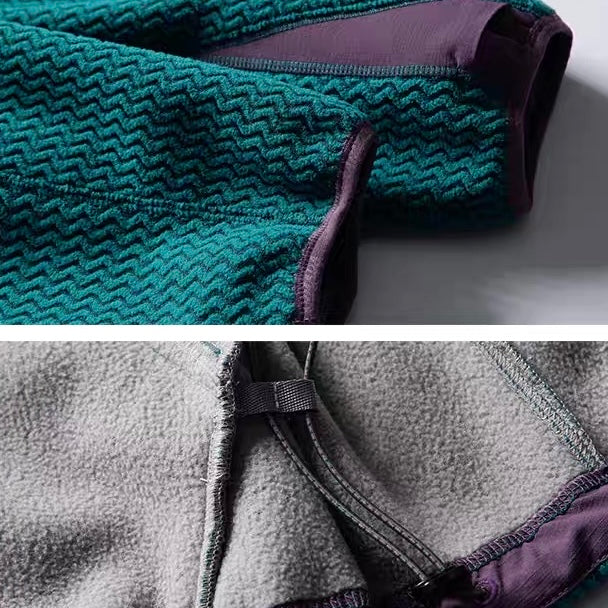 柔らかなフリース素材が肌に優しく、心地よい着心地を提供します。フロントのファスナー付きポケットは、大切な小物を安全に収納できるので、外出時も安心です。