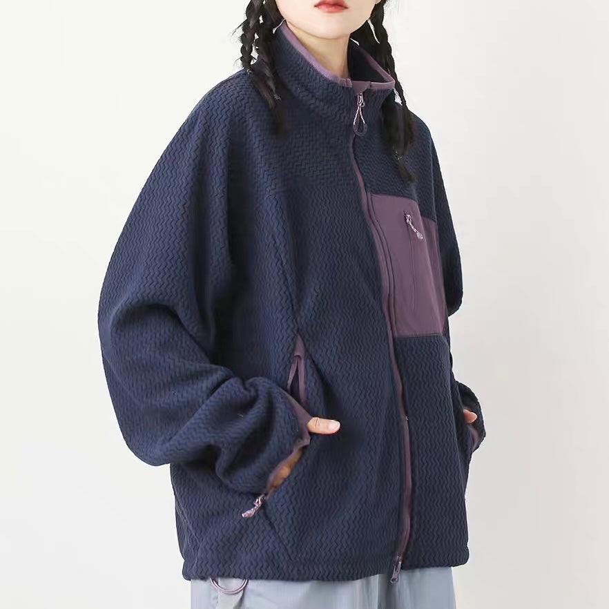 パッチポケット付 スタンドカラー フリースジャケット(5Colors)250730